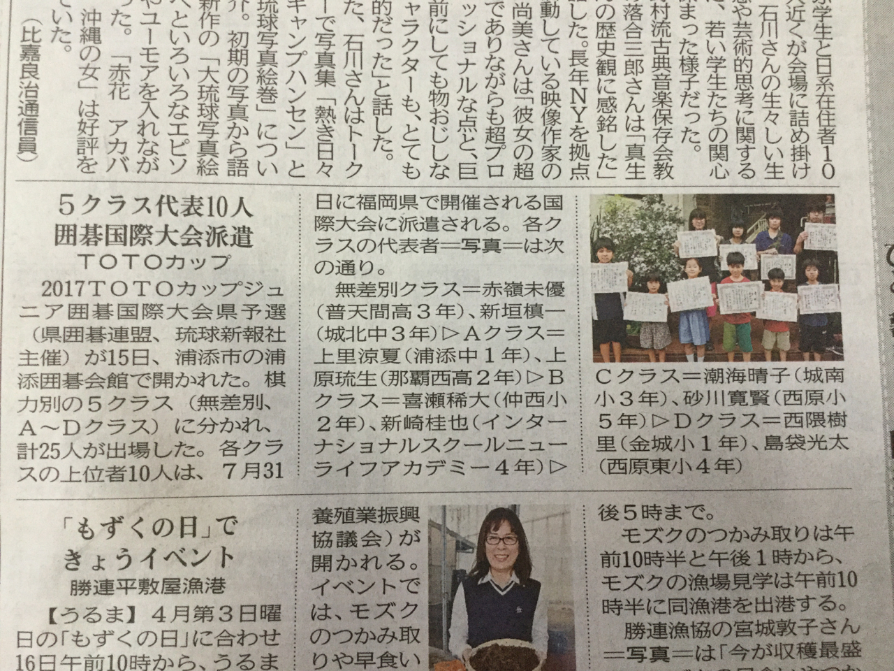 Juri*新聞に載るの巻2017/4/18 15日(土)はTOTOジュニア囲碁国際大会の沖縄予選で 見事、Dクラスの代表になった樹里さん♡♡ 本当に嬉しくて 帰ってからもしばらくはその話に持ちきりで ずーーーーーっと飛び跳ねて喜ん ...