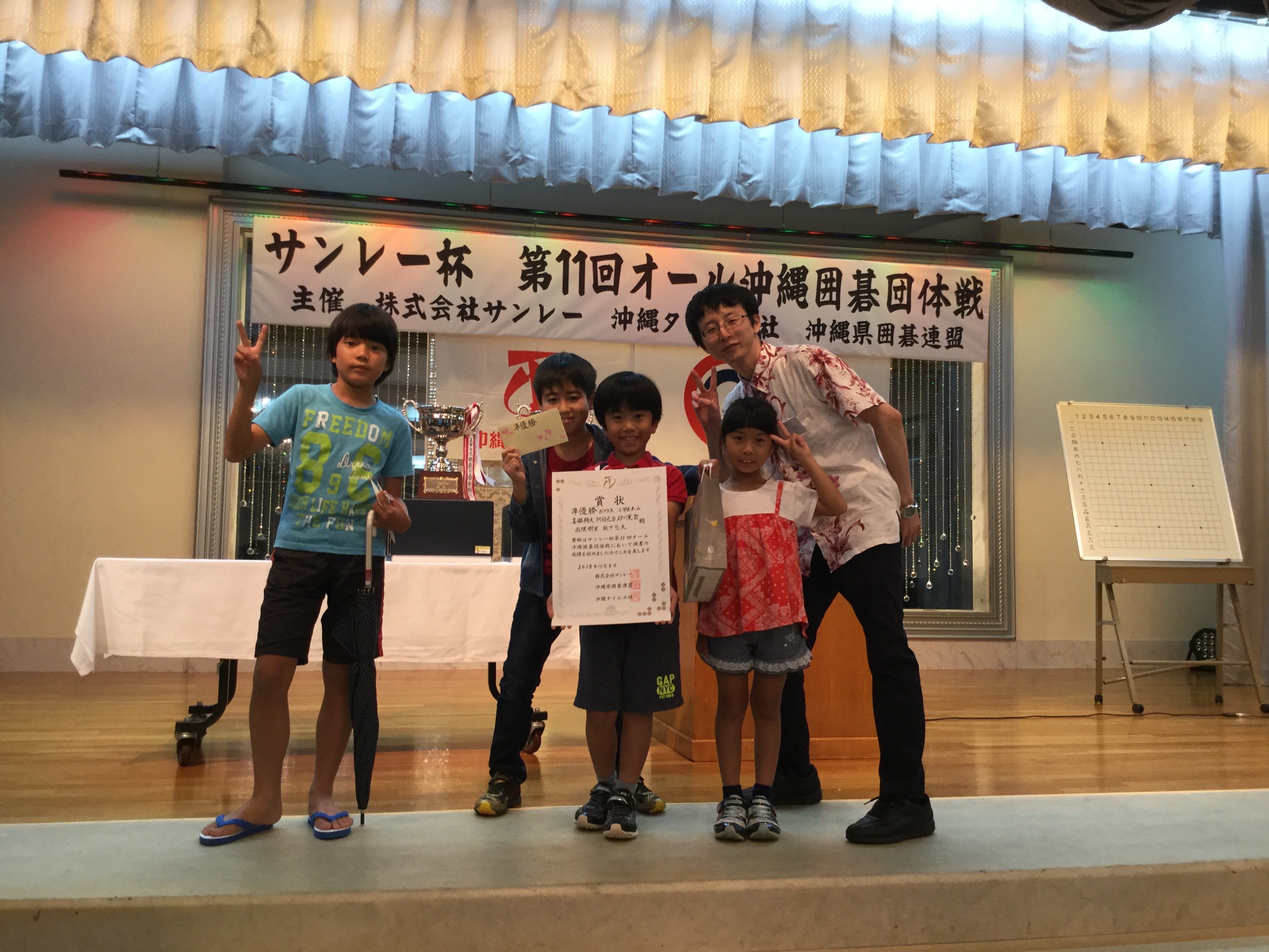 今日は待ちに待った! オール沖縄囲碁団体戦です♫ 前日、私は体調不良でぶっ倒れていたので‥ パパに樹里と賢翔の囲碁教室へ行ってもらいました! その時に、 「明日、選手宣誓す ...