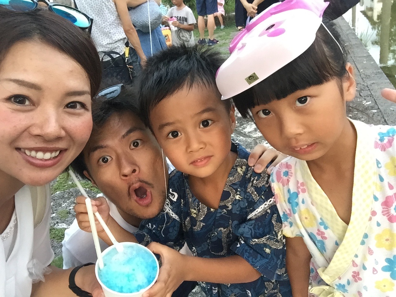 今日は午後から金城まつり♫ 賢翔の保育園の子供達が 盆踊りに参加するとのことだったのでみんなで行ってきましたー! 樹里のお友達Mちゃんにも会えたね〜♫ 明日から囲碁大会で福岡へ行くと行っ ...