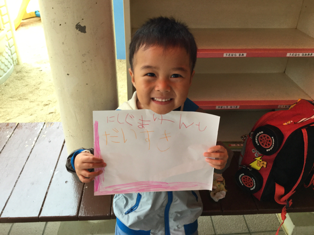 最近、賢翔の保育園のクラスでは お手紙交換がはやっているみたい♫ 帰るときに賢翔のロッカーを見たら・・・! ラブレターが入ってました♡♡♡ 「にしぐまけんと ...
